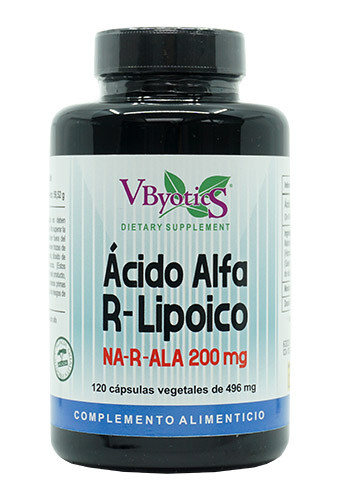 Los complementos alimenticios, como Ácido Alfa R-Lipoico (Vbyotics), no deben utilizarse como sustitutos de una dieta equilibrada.