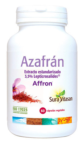 Azafrán (Sura Vitasan) es un complemento alimenticio a base de extracto de estigmas de azafrán (Crocus sativus) (affron®) clínicamente estudiado de la más alta calidad.