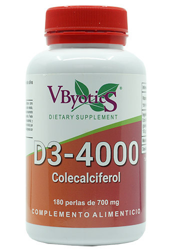 D3-4000 de VByotics es un suplemento de Vitamina D (Colecalciferol) en una base de aceite de oliva.