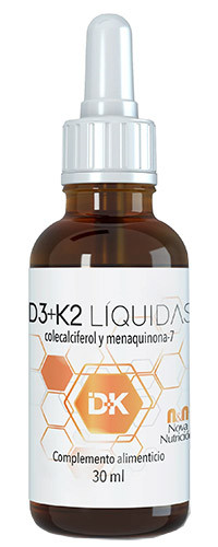 D3+K2 líquidas (Nova Nutrición) es un complemento alimenticio a base de Colecalciferol (vitamina D3) y Menaquinona-7 (vitamina K2).