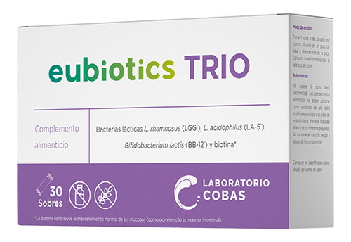 Los complementos alimenticios, como eubiotics TRIO (Laboratorios Cobas), no deben utilizarse como sustitutos de una dieta equilibrada y variada y un estilo de vida saludable.