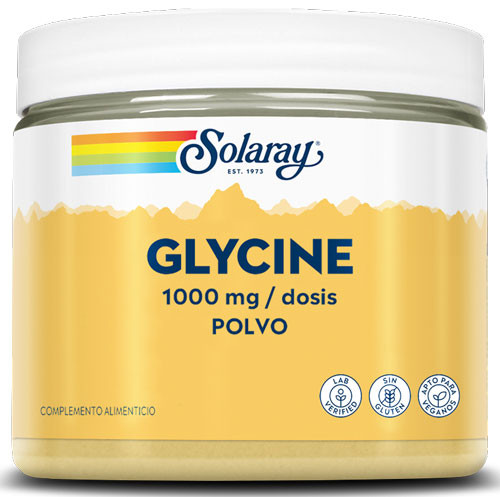 Glycine en polvo (Solaray) aporta 1.000 mg de Glicina de forma libre por dosis diaria recomendada (1/4 cucharita de café).