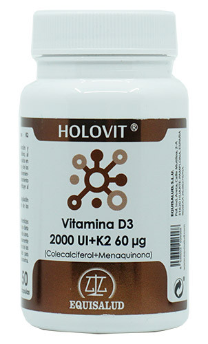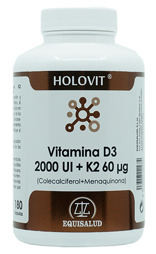 Holovit Vitamina D3 2000 UI + K2 60 mcg de Equisalud es un suplemento a base de vitaminas D3 y K2.