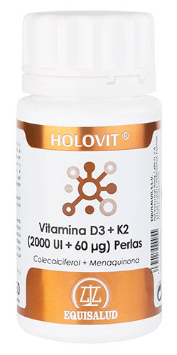 Holovit Vitamina D3 2000 UI + K2 60 mcg de Equisalud es un suplemento a base de vitaminas D3 y K2.