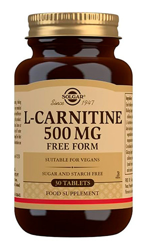 L-Carnitina 500 mg (Solgar) se presenta en un envase compuesto por 30 y 60 comprimidos.