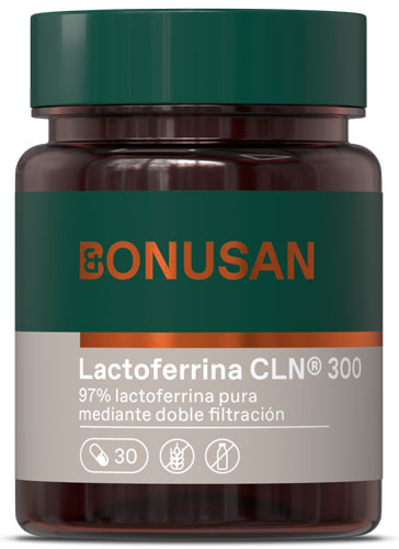 Lactoferrina CLN 300 mg de Bonusan es un suplemento que contiene 300 mg de lactoferrina natural purificada, sin niveles detectables de lipolisacáridos (LPS), por cápsula.