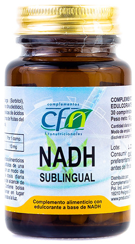 NADH de CFN es un suplemento sublingual de NADH que, además de actuar como antioxidante, aumenta la producción de energía en la célula por lo que es muy útil en casos de aumento del esfuerzo físico o psíquico.