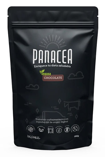 Panacea Vegana es un suplemento elaborado únicamente con proteínas de origen vegetal, en concreto: guisante, arroz y cáñamo. Lleva aromas naturales y está edulcorada con estevia, sin endulzantes ni aditivos artificiales. Con sabor chocolate.