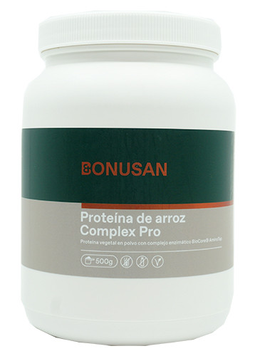 La proteína de arroz es una excelente fuente vegetal de proteínas de alto valor biológico. Su perfil de aminoácidos coincide en un 98% con la leche materna, y muchos expertos la consideran como la mejor alternativa proteínica no animal. Bonusan ha incorporado a esta fórmula un complejo enzimático especial compuesto por peptidasa y proteasa, que sirve para que el organismo digiera y absorba bien los aminoácidos componentes de la proteína.