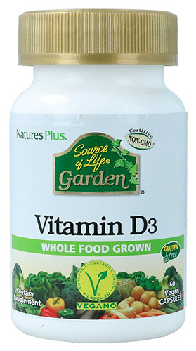 Source of Life Garden Vitamina D3 (Nature's Plus) es un complemento alimenticio de Vitamina D3 procedente de hongos.