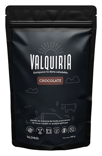 Valquiria (Paleobull) es un suplemento a base de un aislado de proteína de leche de vacas gallegas criadas en granjas extensivas. Con aromas naturales, sin aditivos artificiales y edulcorada con estevia (excepto el sabor neutro).