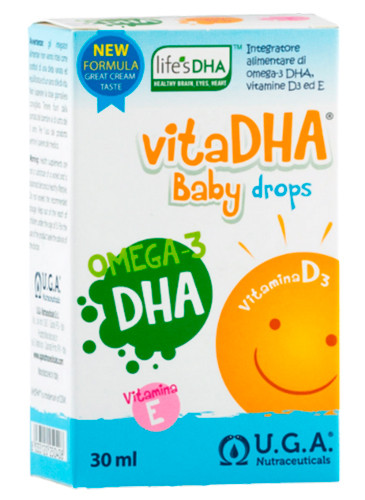 Vita DHA Baby Gotas (UGA Nutraceuticals) es un complemento alimenticio a base de omega-3 DHA proveniente de aceite de algas extraídas de la micro alga Schizochytrium sp.