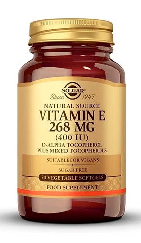 Vitamina E 268 mg (Solgar) se distribuye en envases de 50, 100 y 250 cápsulas blandas. Puedes comprar este suplemento al mejor precio en Misohi Nutrición.
